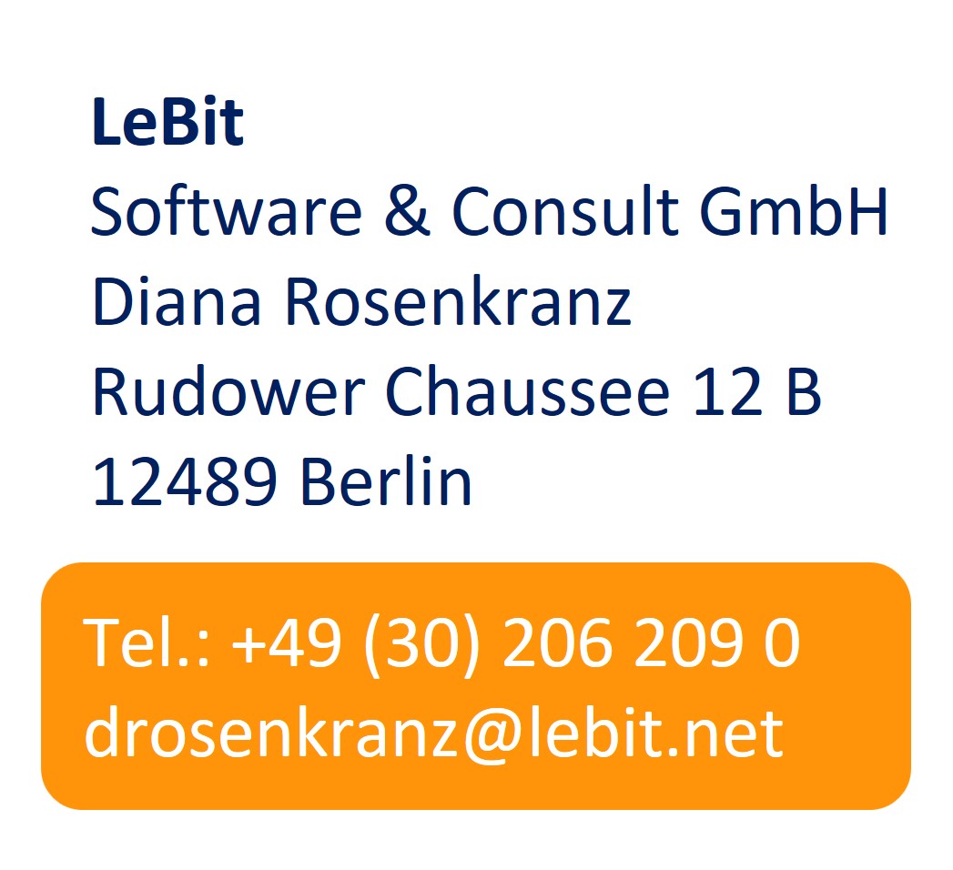 Aktuell findet eine technologische Umstellung unseres Supportsystems statt. Dadurch kann es zu Verzögerungen bei der Reaktion auf die Support-Mailadressen kommen. Bitte nutzen Sie möglichst ihre direkten Zugänge. Erhalten Sie auf eine Mailanfrage binnen 24 Stunden keine Reaktion, senden Sie die Mail bitte an lebit@lebit.net. Bitte beachten Sie, dass aus Datenschutzgründen nur registrierte Supportnutzer Zugang zum Supportsystem und den Support-Mailadressen haben.